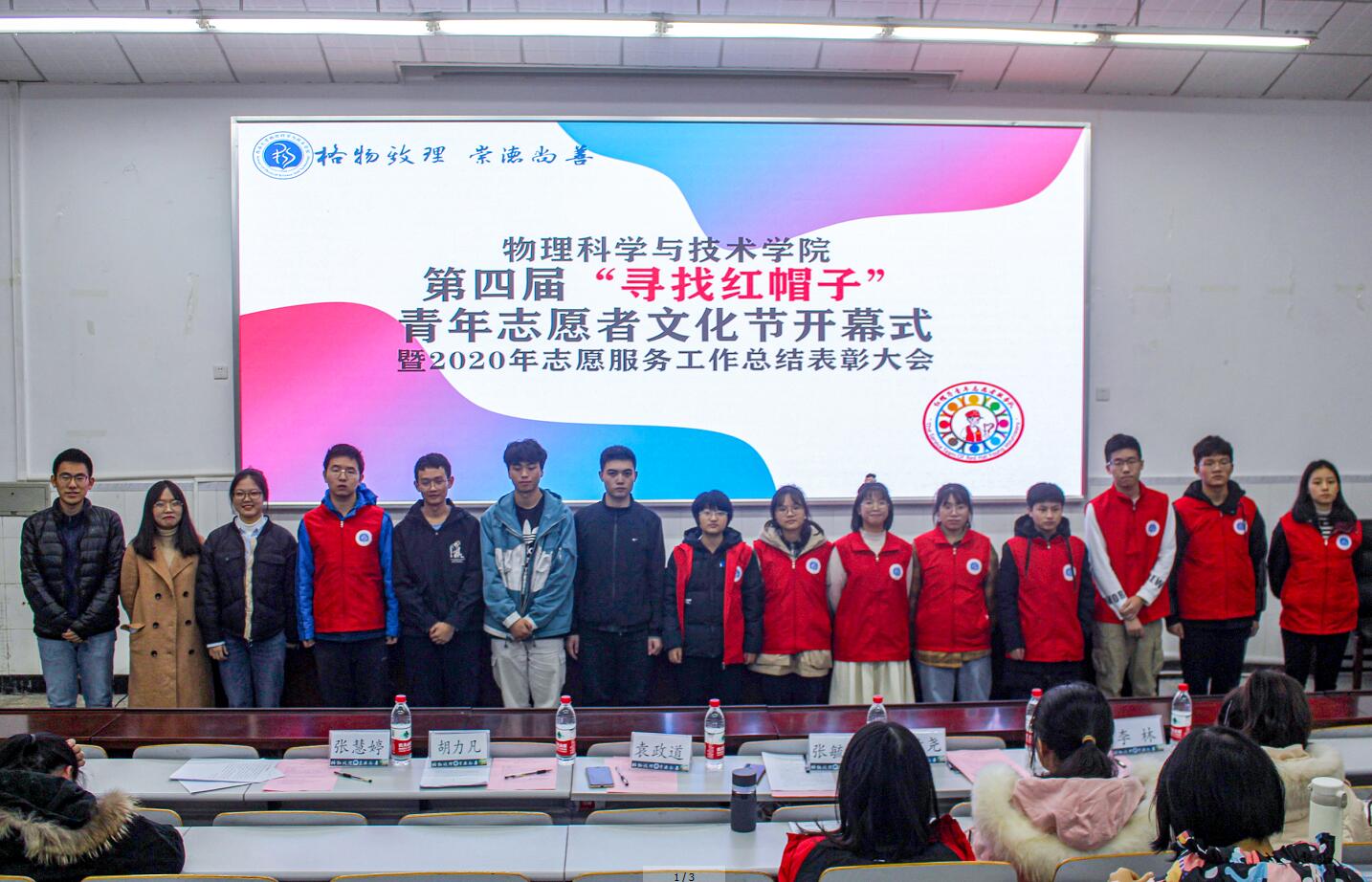 12月4日晚,胜游体育(中国)官方在线第四届“寻找红帽子”青年志愿者文化节开幕式暨2020年志愿服务工作总结表彰大会在物理大楼大阶梯教室举行。胜游体育(中国)官方在线学生会主席团成员、“红帽子”青年志愿者服务队队员、科普创作社成员、“红帽子”本科生党员先锋队队员及2020级本科生代表约200人来到了活动现场。