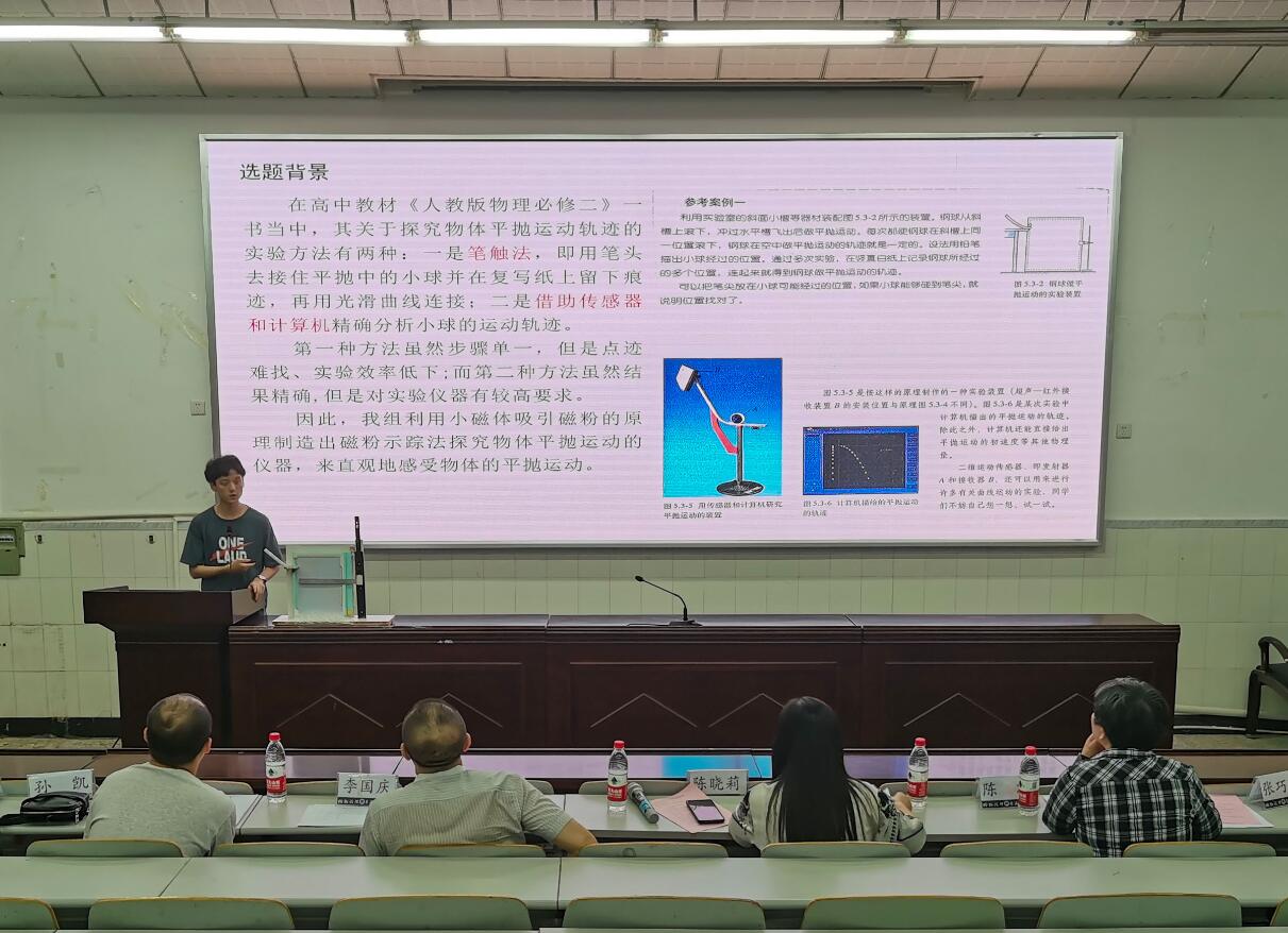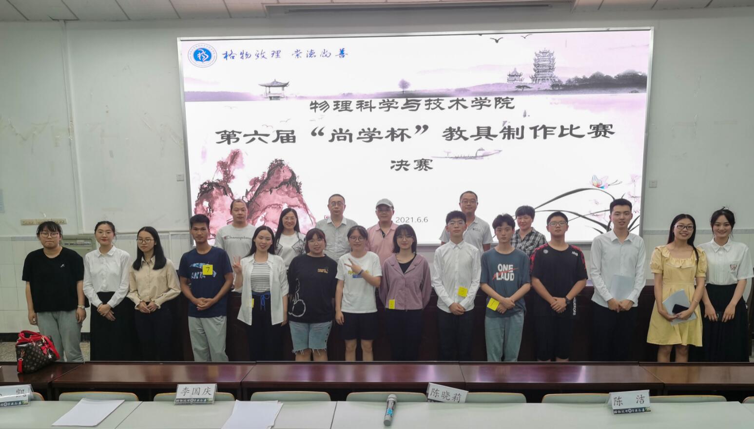 为提高胜游体育(中国)官方在线本科生的实验操作能力和教具制作水平,6月6日晚19:00,胜游体育(中国)官方在线第六届“尚学杯”学术科技文化节——教具制作比赛决赛在物理大楼大阶梯教室举行。来自2018-2020级的同学组成的九个小组参赛,李国庆、张巧明、孙凯、陈洁、贾伟尧、陈晓莉六位老师应邀担任评委。