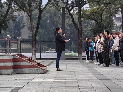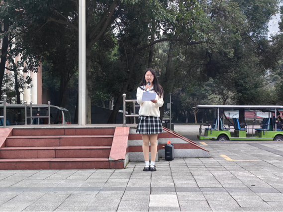 接着,学生代表2023级师范5班的方佳同学发言,她表示青年大学生应当把个人夺冠的“小目标”紧紧融入党和国家事业的“大蓝图”中,将自己对中国梦的追求化作一件件身边事。方佳同学还倡议同学们做到以下三点:正三观、立根基;夯基础、抓素养;重实践、求创新,争做有为新青年。