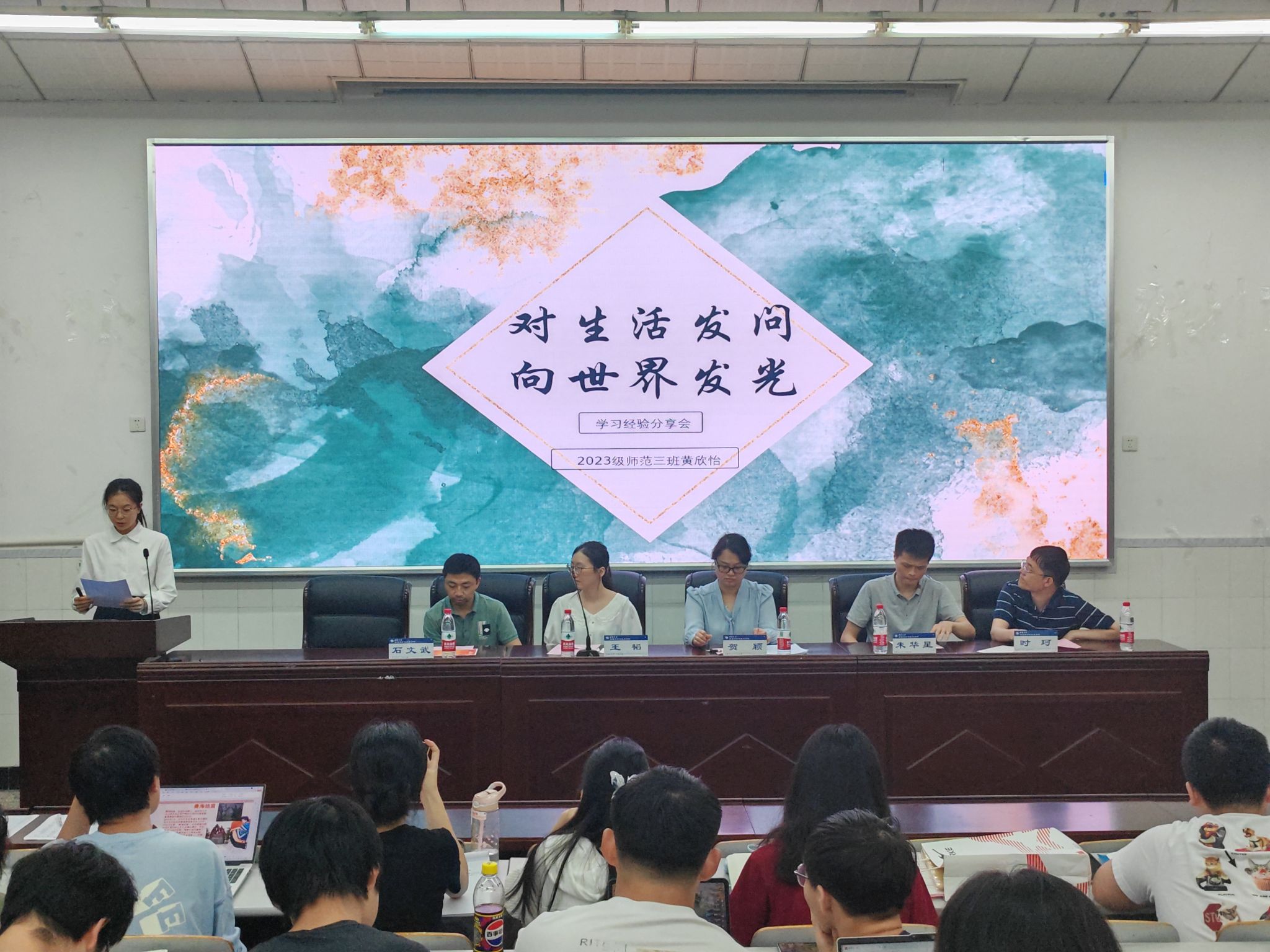 师范三班黄欣怡同学以“对生活发问,向世界发光”为主题,介绍了自己观察生活、勇于实践的学习方法。在课程学习方法方面,她将自己的心得归纳为三点,即带着思考去预习,带着问题去听课,带着逻辑去梳理。她强调将被动学习转化为主动学习的关键在于多思考,多提问,多交流,最后她号召学有余力的同学们参加学业帮扶备课活动、科普志愿讲解活动,充分实现自我价值。