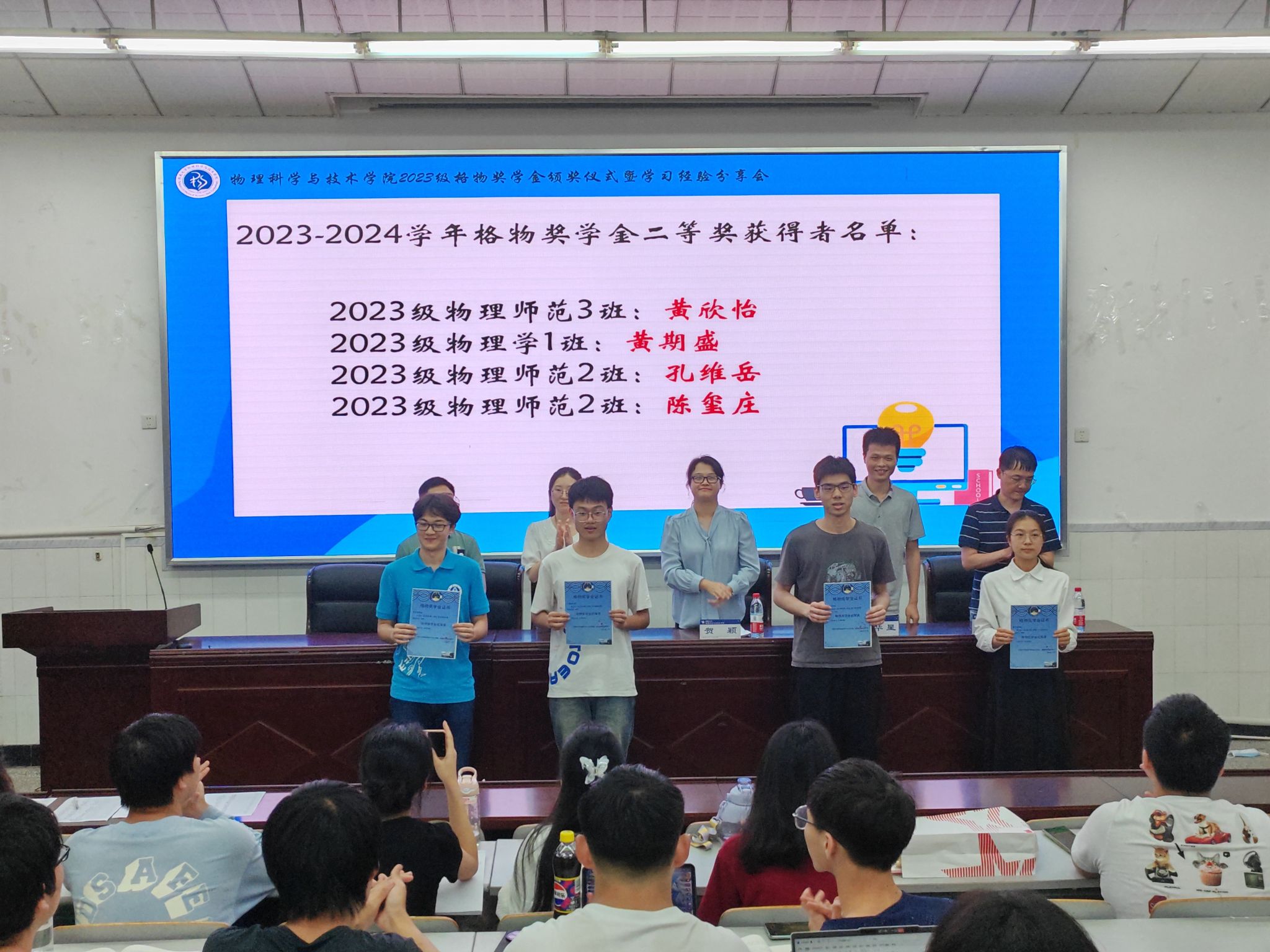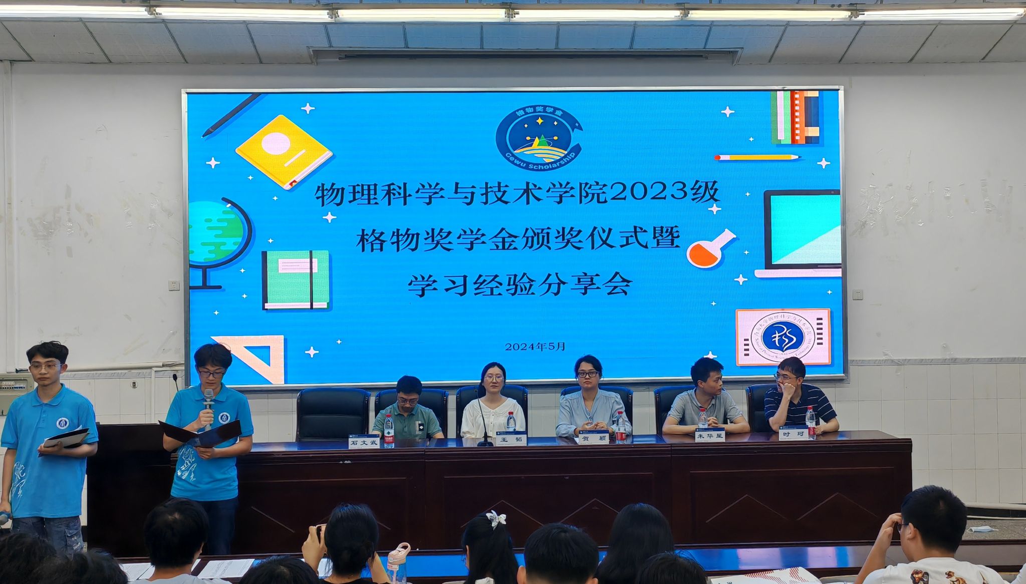 为进一步加强学风建设,鼓励学生刻苦学习,全面发展,5月22日下午17:00,胜游体育(中国)官方在线在大阶梯教室举办2023级“格物奖学金”颁奖仪式暨学习经验分享会。2023级辅导员贺颖,班主任时珂、王韬、朱华星、石文武和245名大一同学参加颁奖仪式,仪式由2023级黄梓恒和陈玺庄同学主持。