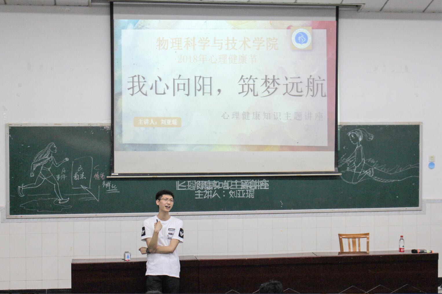 5月18日晚,学校心理健康教育与服务中心兼职讲师、心理学部研究生刘亚琨应邀前来物理大楼大阶梯教室开展“情绪管理和人际关系改善”主题讲座。他阐明了情绪管理的重要性,分析了大学生常见心理危机,指出面对压力事件时应“保持冷静、适当自我暗示、及时转移注意力和适度宣泄不良情绪”,建议大学生要有意识提高情商,察觉他人情绪变化,巧妙处理人际关系。