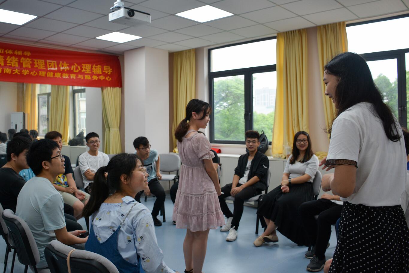 此外,“今天你减压了吗?”“在恋爱交友中成长”两次心理团体辅导活动则通过角色体验、游戏互动等方式帮助参与的40名同学体察和倾诉自身压力、学会合理宣泄情绪、正确处理恋爱关系。心理健康节期间还持续开展了线下摆点的“心灵快递”主题活动,开展“心灵之舟”送信、“心愿墙”两种形式的交流活动,参与同学在写下自己对国家社会发展的寄语、对老师同窗的情谊,以及对自己未来成长期待的心语心愿。