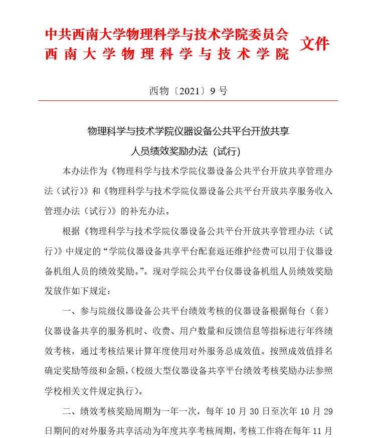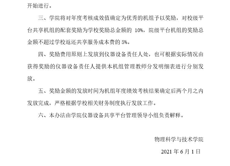 物理科学与技术胜游体育(中国)官方在线仪器设备公共平台开放共享人员绩效奖励办法(试行)