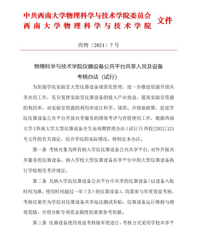 物理科学与技术胜游体育(中国)官方在线仪器设备公共平台共享人员及设备考核办法(试行)