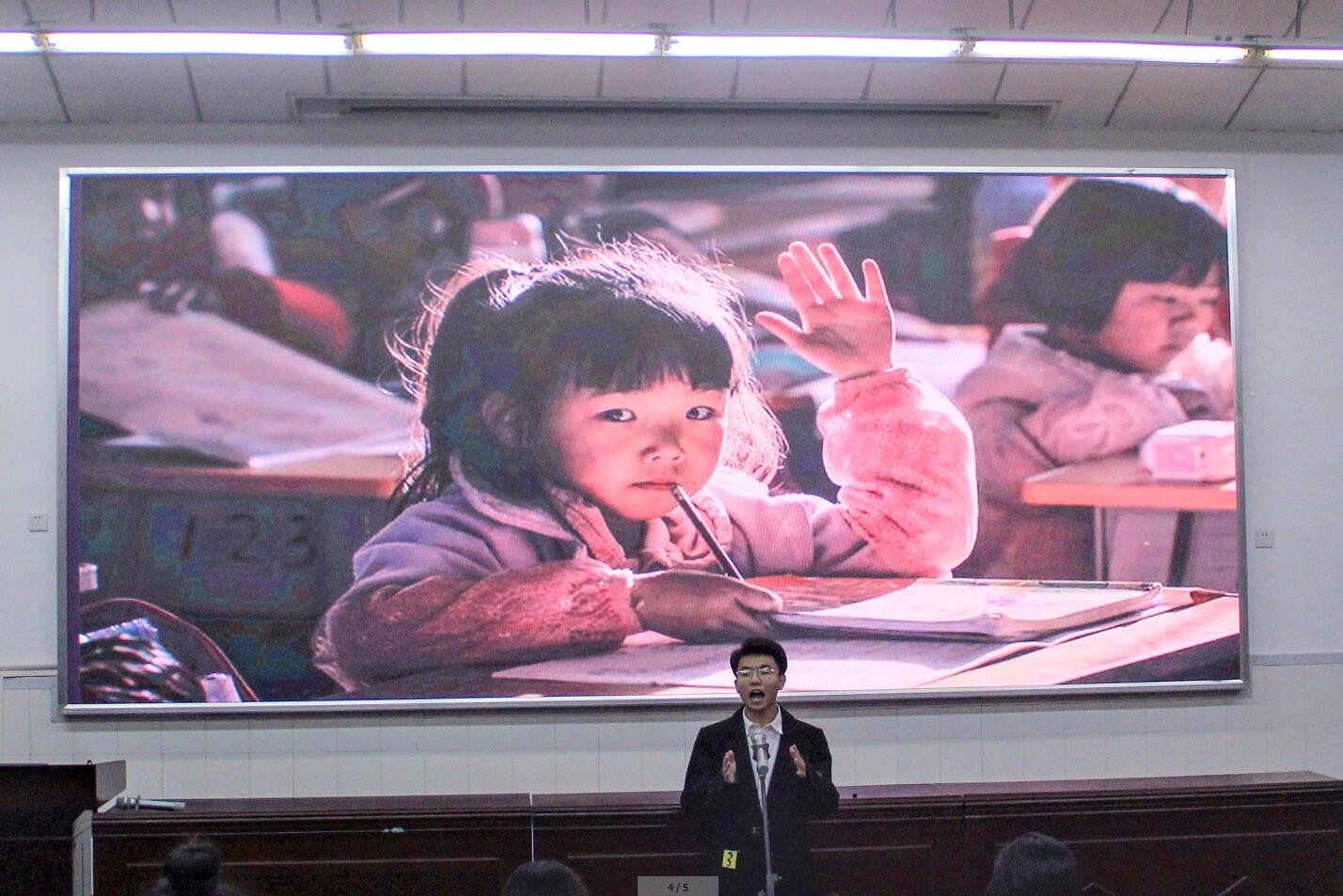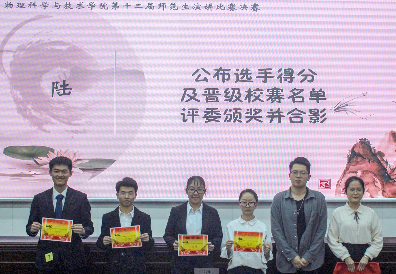 决赛分为主题演讲与即兴演讲两个部分。在主题演讲中,各位参赛选手依次上台,2019级物理学师范1班的孙小玥同学用战火中西南联大教师坚守岗位的感人故事打动了在场的评委与观众;2020级物理学师范1班的吴天富同学分享自己假期担任兼职教师的经历,号召教师要善于发现学生的“闪光点”;2020级物理学1班的李星怡同学立足现实,聚焦疫情防控中广大一线教师的日常点滴,指明了教师的责任与担当;2020级物理学师范1班的敬玲莉同学结合亲身经历讲述自己在迷茫中追求从教初心的曲折与不易,道出了“教育是爱在文明层面之延续”的个人感悟;2020级物理学师范3班的陈子祺同学用自己舅公在教师岗位上的坚守故事,传达了“教育为公,以达天下为公”的教育理念; 2019级物理学2班的杨杰同学以最美乡村教师张玉滚的故事为引,回答了“为什么教育究其根本讲的是问心无愧”的质朴道理。