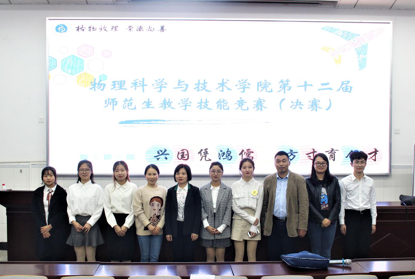 赛后,评委依次进行了点评。陈文鑫老师指出:“参与讲课比赛要提前调试实验器材,在有限的比赛时间里学会讲清楚一个知识点,通过板书设计引导学生掌握重点难点”。秦丽溶老师建议选手们“对于教师职业要有敬畏之心”,建议备课过程中学会“引古论今”从而拓展教学思路。谭兴文老师指出选手们在说课、演示实验等环节中的不足之处,并从如何解读课程标准、如何突出教学设计亮点、如何将大学知识和中学教材进行关联等方面提出有效建议。