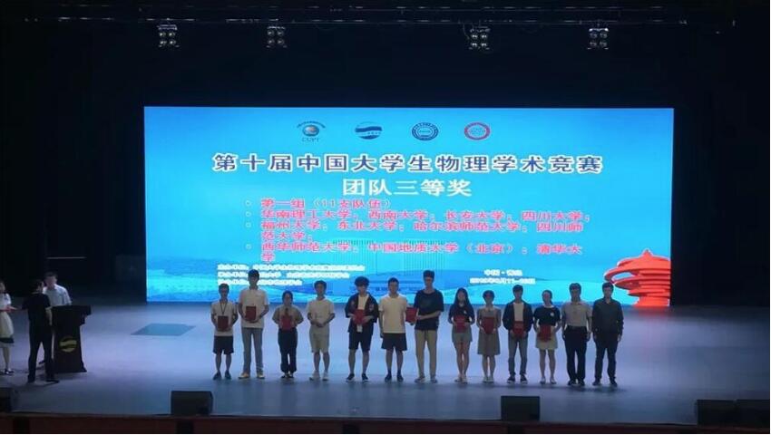 8月13日,第十届中国大学生物理学术竞赛在青岛大学开幕,共有来自全国各地多所高校的65支代表队参赛。在胜游体育(中国)官方在线副院长袁宏宽、指导教师杨铁的带队下,胜游体育(中国)官方在线2017级九名本科生组队参赛,他们分别是刘铭睿、程岩、刘潇涵、邱莉、祖金莹、刘秋莲、王宇豪、付朝林、刘洋。